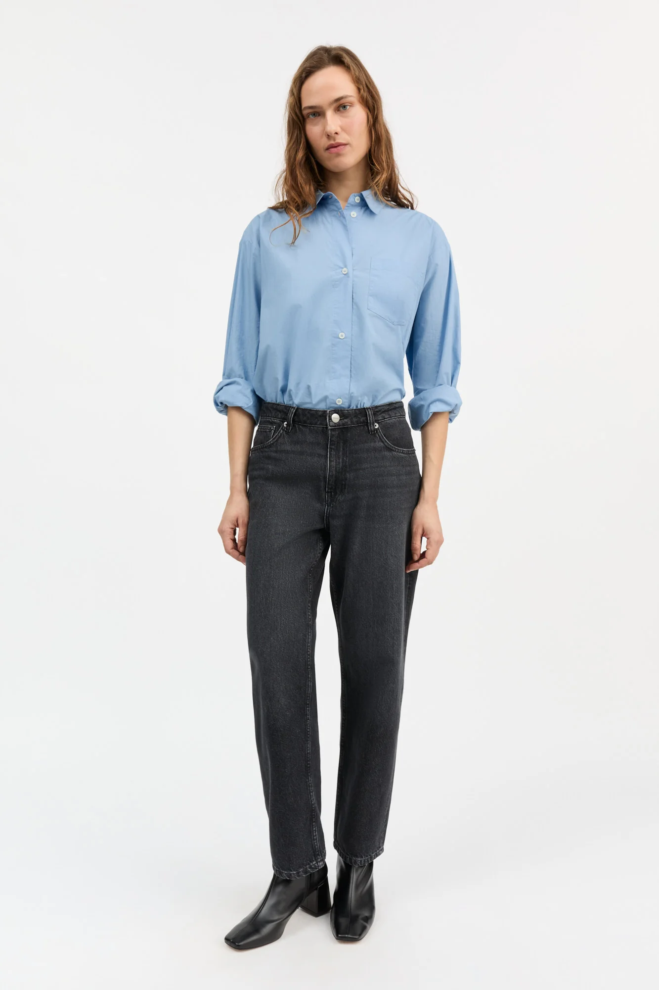 Cropped straight-leg jeans with mid waist and classic five-pocket design.