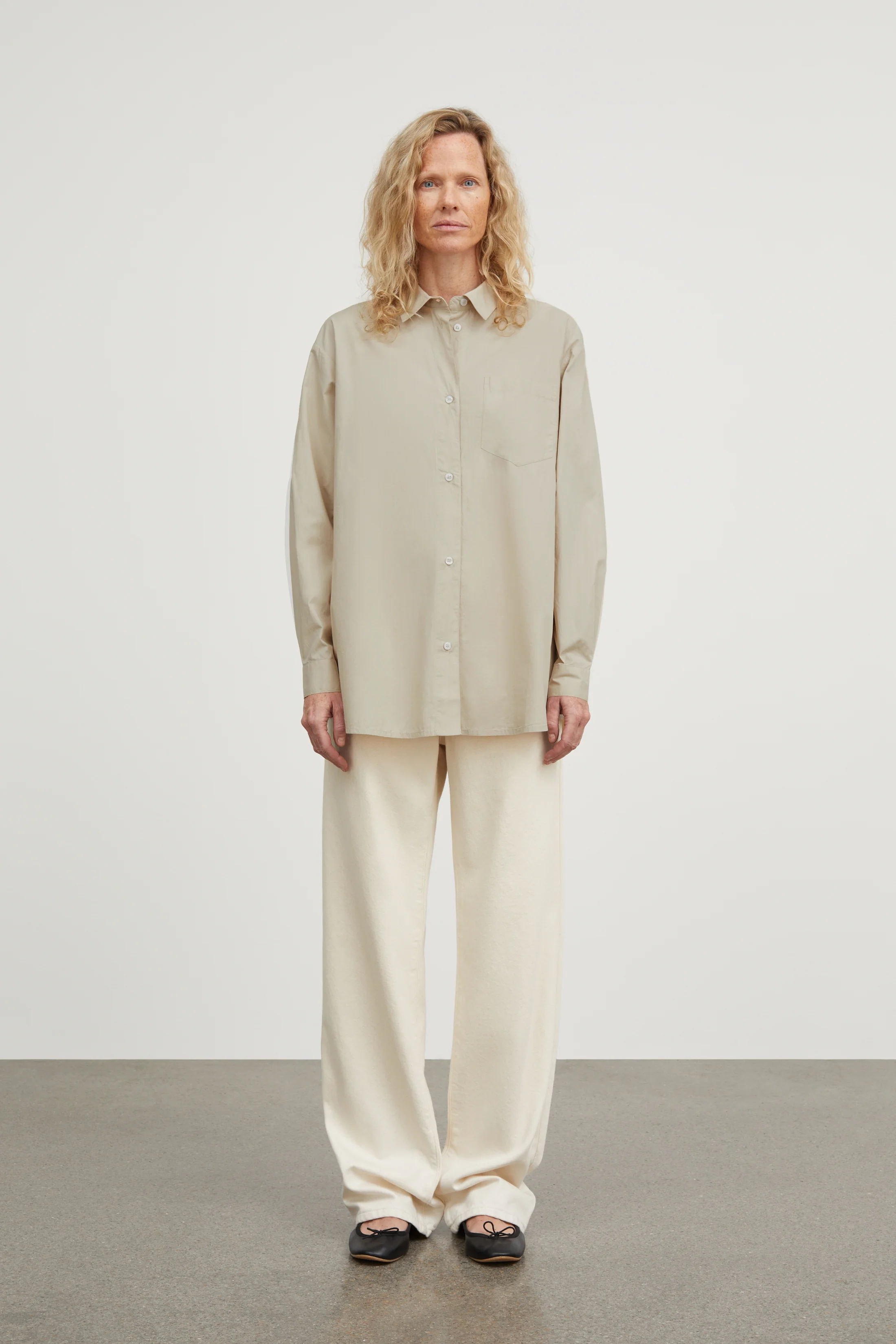 Oversized cotton shirt with classic collar, chest pocket and back pleat.