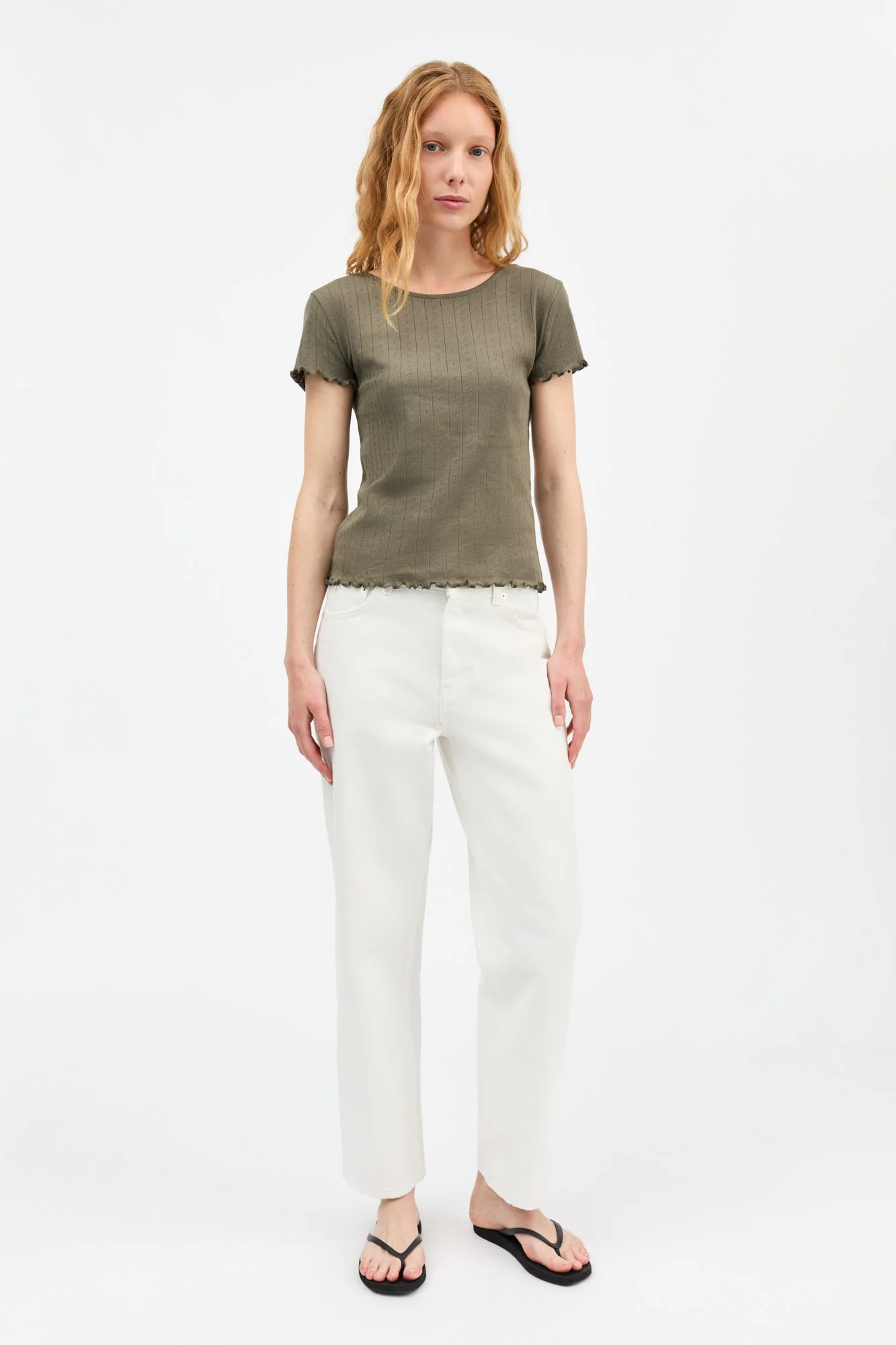 Soft cotton T-shirt with pointelle texture, short sleeves and baby lock edges.