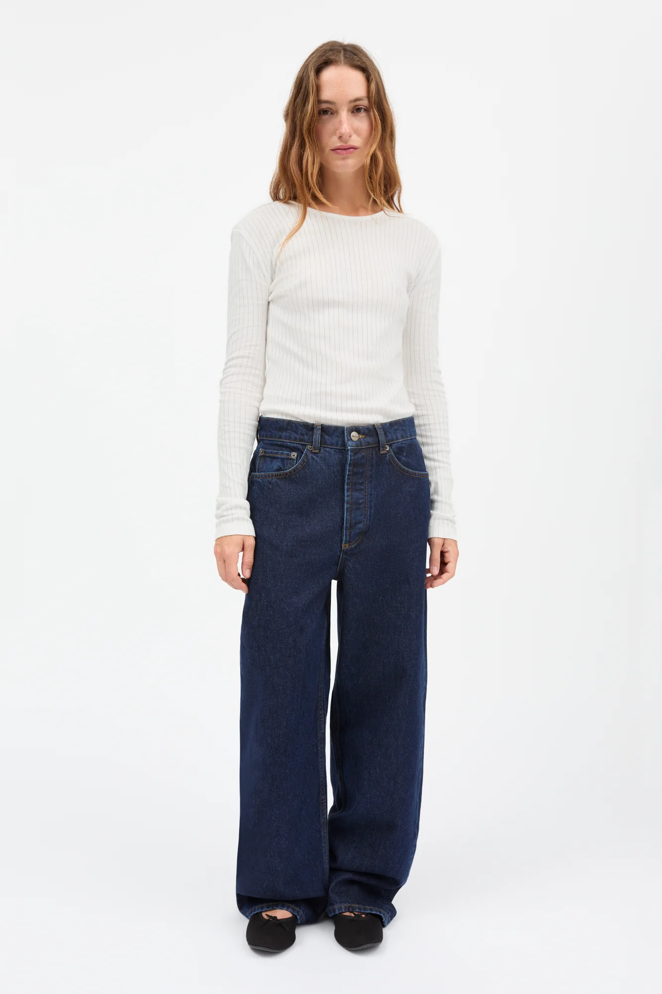 Slim ribbed long-sleeve blouse with round neckline.